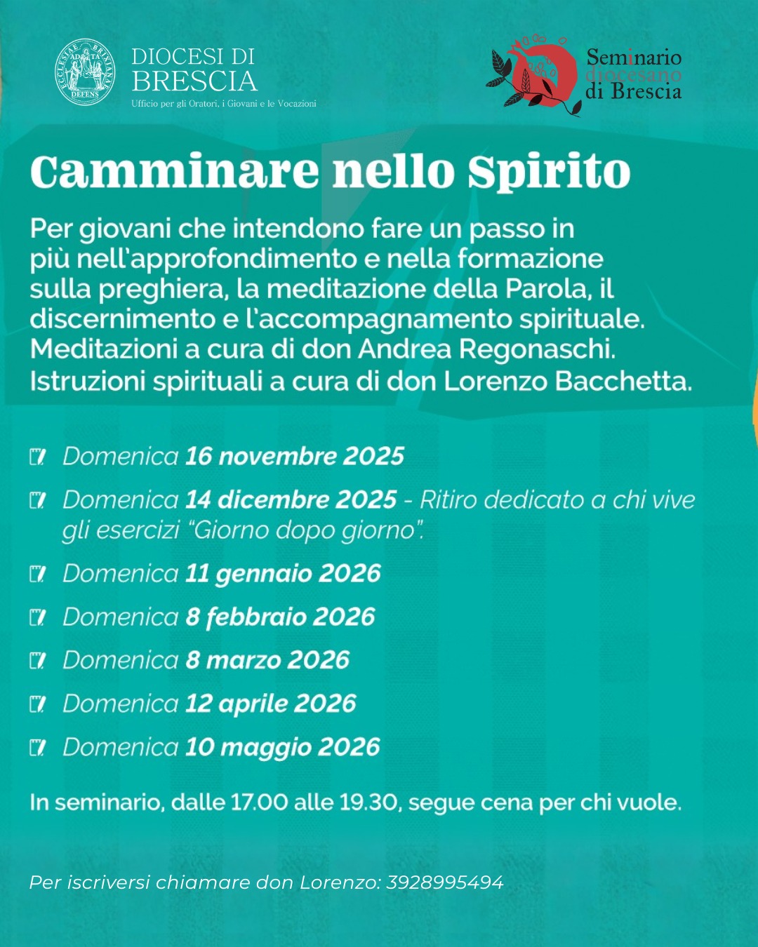 Comunità di vita Proposta di alloggio in comunità di vita per studenti e studentesse, presso appartamenti di proprietà di parrocchie. Document Locandina Camminare nello Spirito Proposta di percorso di formazione alla vita spirituale. Document Locandina Giovani in missione Proposta di formazione ed esperienza missionaria. Document Locandina